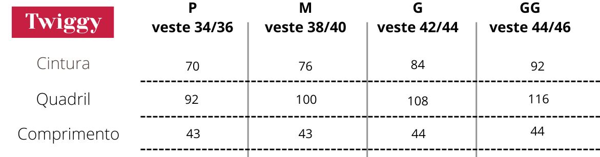 Outro diferencial está no detalhe liso da barra, que facilita cortes e ajustes, tornando-a ideal para mulheres de diferentes alturas. Com um design que une a funcionalidade e elegância, a calça Twiggy é indispensável no guarda roupa de quem ama unir conforto e estilo