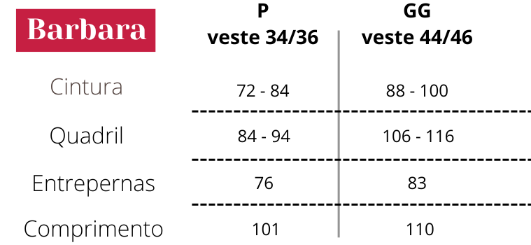 Ideal para quem busca uma peça chic e versátil, a calça Bárbara é perfeita para compor visuais refinados. Seja no trabalho ou em ocasiões especiais, ela combina com peças de alfaiataria , camisas e salto alto, garantindo um estilo sofisticado e moderno