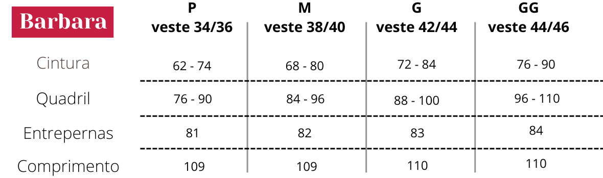 Outro diferencial está no detalhe liso da barra, que facilita cortes e ajustes, tornando-a ideal para mulheres de diferentes alturas. Com um design que une a funcionalidade e elegância, a calça Bárbara é indispensável no guarda roupa de quem ama unir conforto e estilo